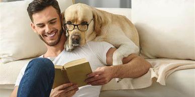 One of our staff members will read one-on-one with your canine or feline companion. We have a variety of children's books in our library to choose from.